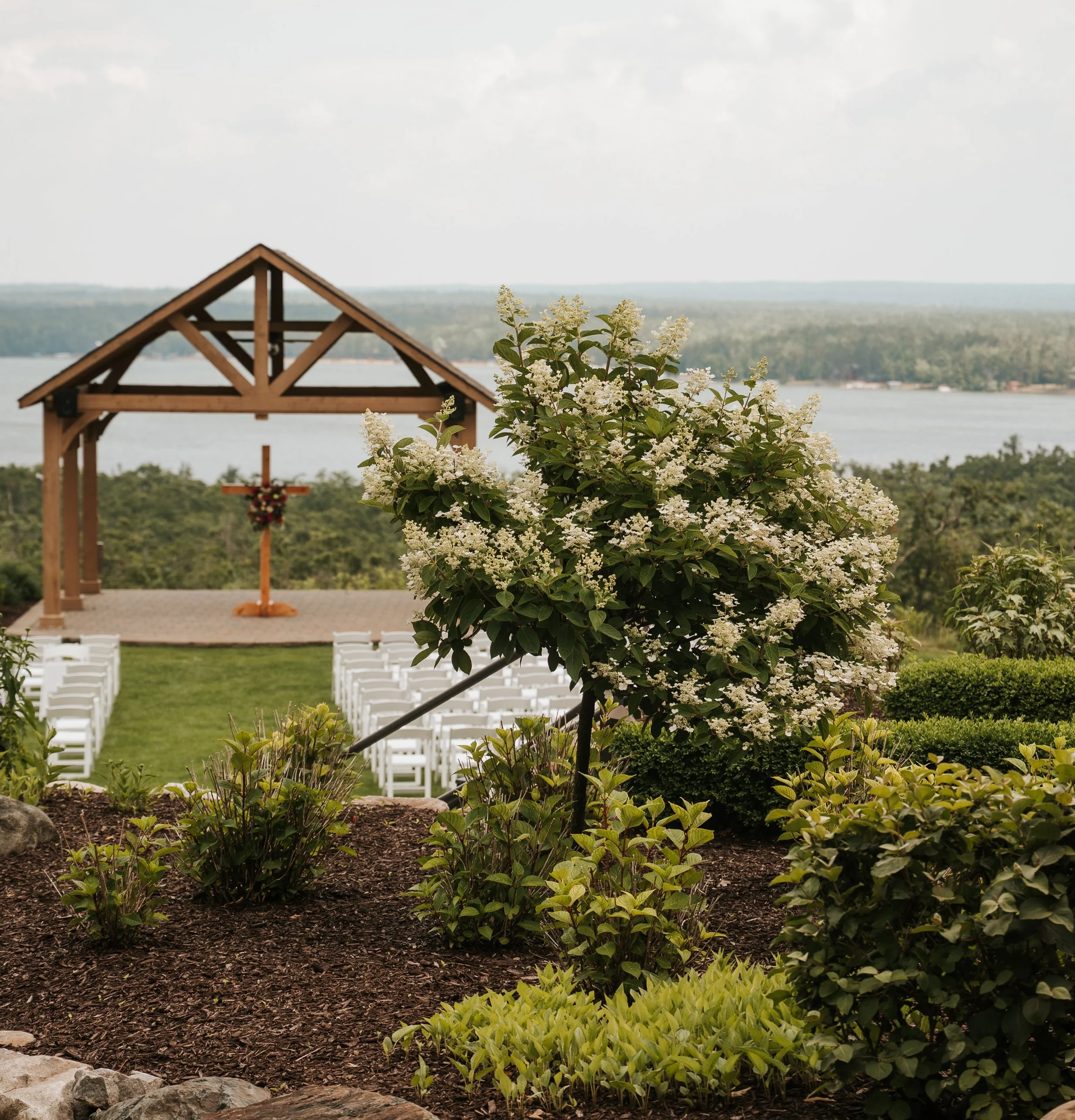 Our venue boasts a picturesque outdoorceremony location, along with multiple patios and decks for your celebration.